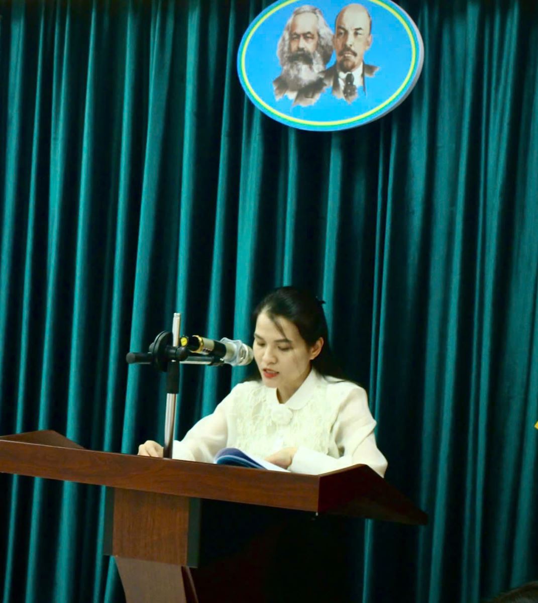 Bà Vũ Thị Thắm – Trưởng phòng TCKT Công ty trình bày các Tờ trình tại Đại hội