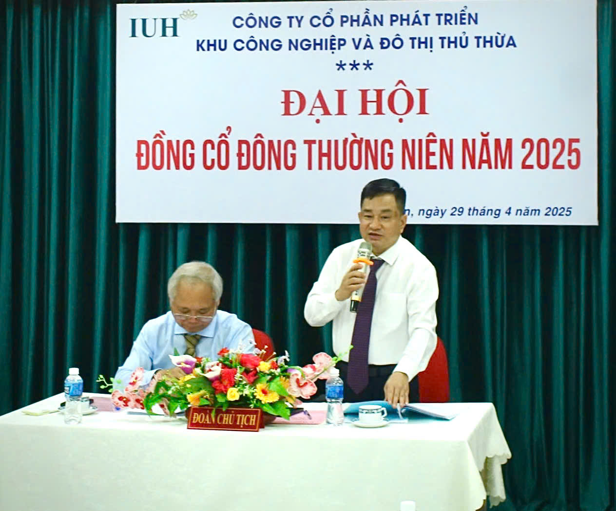 Chiều ngày 29/4/2025, Công ty cổ phần Phát triển KCN và đô thị Thủ Thừa (IUH) đã tổ chức Đại hội đồng cổ đông thường niên năm 2025. Tham dự Đại hội có Hội đồng Quản trị, Ban Tổng Giám đốc, Ban kiểm soát và quý cổ đông Công ty.