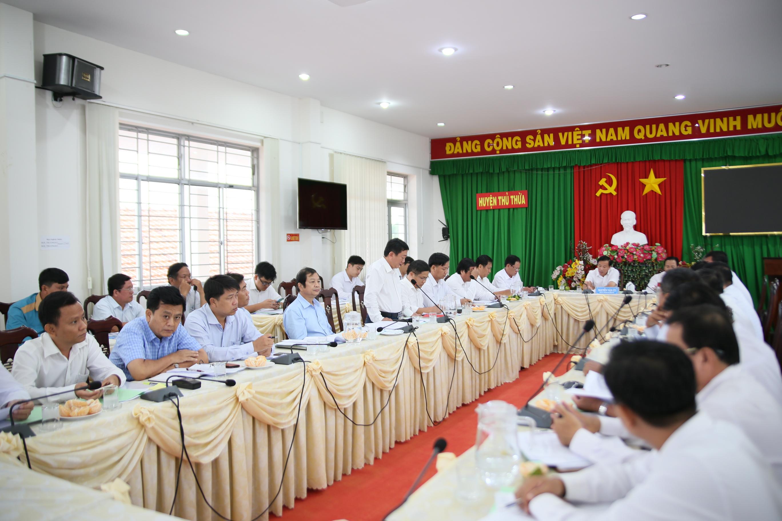 Tham dự buổi họp có lãnh đạo các Sở ngành, lãnh đạo Huyện ủy, UBND huyện Thủ Thừa, cùng lãnh đạo IDTT và các đơn vị liên quan.